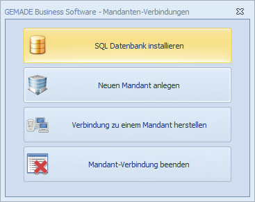 Wurde die GEMADE Business Software erfolgreich installiert und das erste mal ausgeführt, muss die Grundkonfiguration durchgeführt werden. In dieser Grundkonfiguration wird, ein Microsoft SQL Server installiert, welchen Sie zuvor von der Microsoft Internetseite heruntergeladen haben (Siehe Kapitel Installation - Download Microsoft SQL Server)